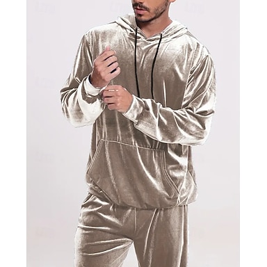 Homens Moletom Conjunto de roupas Conjunto de moletons Capuz Ao ar livre Diário Esportes Com Cordão Bolsos Tecido Vermelho Vinho Preto Azul Royal Poliéster Roupas Esportivas Moda Roupa de rua