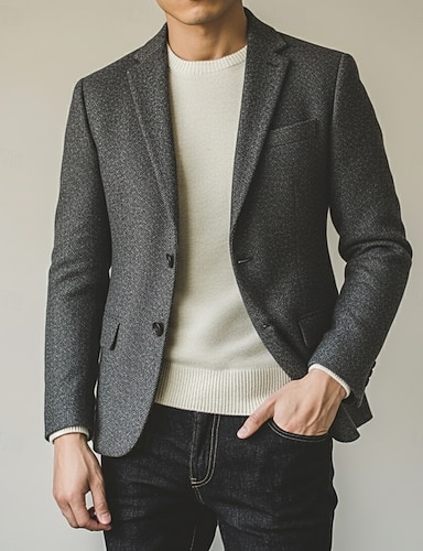 Homens Blazer de Tweed Colar de entalhe Moda Clássico Casual Cor Sólida Blazer de tweed Preto Vinho Cinzento Fino Dois botões de peito simples