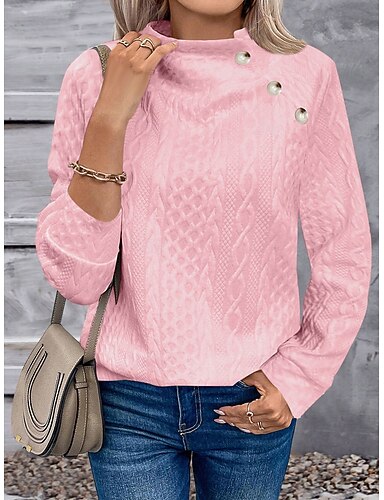 Mulheres Camiseta T-shirt Botões Assimétrico Côr Sólida Elegante Moda Manga Longa Decote Quadrado Tops regulares Diário Final de semana Preto Marron Rosa cor de Rosa Cinzento Primavera Outono