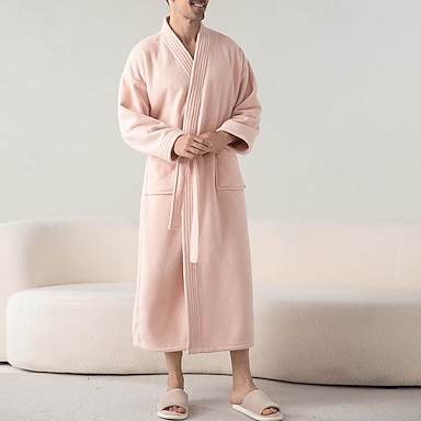 Homens Pijamas Roupa de Dormir Roupão Tecido Moda à moda Clássico Casa Diário De Cama Flanela Poliéster Térmico / Quente Conforto Macio Decote V Manga Longa Outono Inverno Rosa Camelo