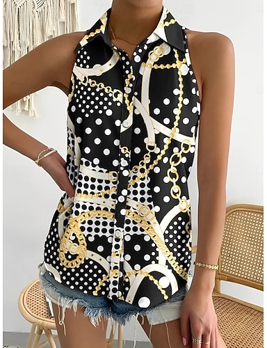Mulheres Camisa Social Blusa Botões Gráfico à moda Clássico Moderno Sem Manga Colarinho de Camisa Tops regulares Diário Feriado Para Noite Azul Preto Amarelo Azul Marinha Laranja Verão Primavera