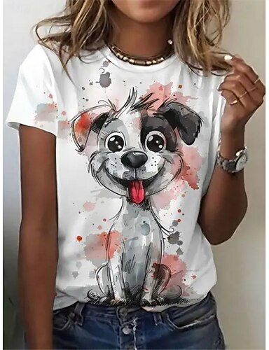 Mulheres Camiseta Imprimir Gráfico Animal Cachorro Vintage à moda Clássico Manga Curta Gola Redonda Decote Redondo Tops regulares Diário Final de semana Branco Verão Primavera Outono Inverno