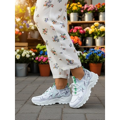 Tênis feminino leve e casual para caminhada, com cabedal em malha respirável - modelo moderno com cadarço, ideal para uso diário, caminhadas, viagens, deslocamentos, passeios ao ar livre e exercícios casuais.