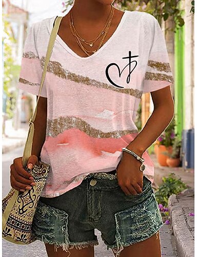 Mulheres Camiseta Imprimir Âmbar Gráfico Vintage à moda Clássico Manga Curta Decote V Tops regulares Diário Rosa Verão Primavera Outono Inverno