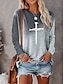 Mulheres Camiseta Imprimir Gráfico Gradiente Vintage à moda Clássico Manga Longa Pescoço Entalhado Tops regulares Diário Final de semana Azul Claro Primavera Outono Inverno