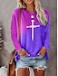 Mulheres Camiseta Patchwork Imprimir Gráfico Geométrica Gradiente Vintage à moda Moderno Manga Longa Gola Redonda Tops regulares Diário Azul Rosa Roxo Verde Primavera Outono Inverno