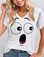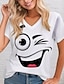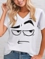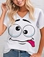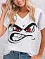 Mulheres Camiseta Imprimir Gráfico à moda Clássico Casual Manga Curta Decote V Tops regulares Diário Azul Preto Branco Vermelho Verão Primavera