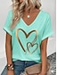 Mulheres Camiseta Imprimir Coração Gráfico Vintage à moda Clássico Manga Curta Decote V Tops regulares Diário Final de semana Roupas de férias Verde Verão Primavera