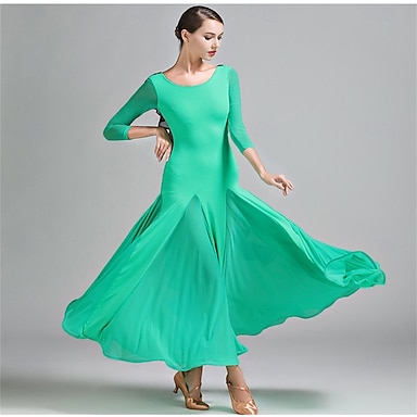 Vestido de Convidada de Casamento Longo em A Linha Vestido Formal Vestido de Festa Mãe da Noiva Manga 3/4 Decote Redondo Elegante Formal com Pregas Cor Sólida