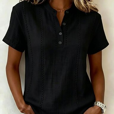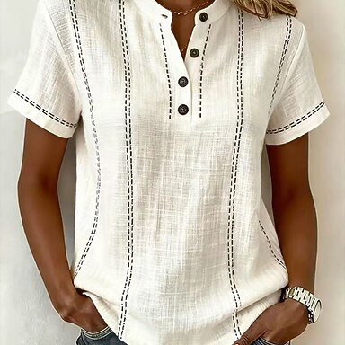 Mulheres Camiseta Camisa Henley T-shirt Botões Moda Casual Estilo Praia Sem Manga Decote V Tops regulares Casual Azul Preto Branco Rosa Verão