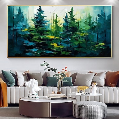 Mintura pinturas a óleo de floresta verde feitas à mão em tela grande arte de parede decoração moderna abstrata árvores paisagem imagem para decoração de casa pintura sem moldura enrolada sem esticada