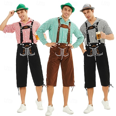 Carnaval Cerveja Oktoberfest Oktoberfest Roupa Baile de Máscara Lederhosen Bávaro Alemão Estilo Tradicional prados Homens Carnaval Festa dia das Bruxas Pano de Estilo Tradicional Blusa Calções Chapéu