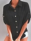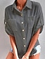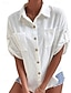 Mulheres Camisas de algodão e linho Blusa Bolsos Botões Tecido Elegante Vintage à moda Meia Manga Colarinho de Camisa Tops regulares Diário Feriado Para Noite Preto Branco Cinzento Verão Primavera