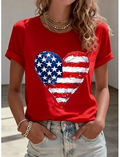 Dia da Independência Americana Mulheres Camiseta T-shirt Imprimir Gráfico à moda Clássico Casual Manga Curta Gola Redonda Decote Redondo Tops regulares Diário Para Noite Final de semana Azul Preto