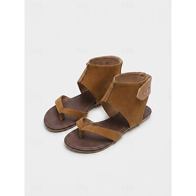Sandálias gladiadoras femininas com fivela – sandálias rasteiras ajustáveis com duas tiras, calçado casual e confortável para caminhadas ao ar livre, viagens a resorts e férias de verão.