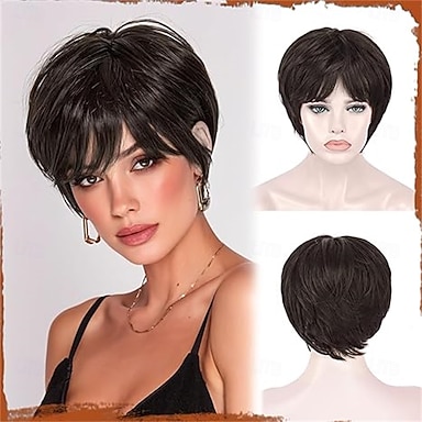 perucas curtas para mulheres peruca de cabelo curto em camadas com franja peruca sintética natural fofa