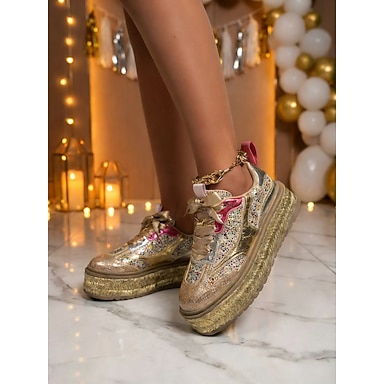 Tênis plataforma feminino prateado brilhante - sapatos coloridos com cadarço e glitter para festas de aniversário, baladas e eventos casuais.