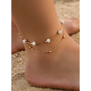 tornozeleira feminina com contas de strass de camada dupla – elegante joia de praia com corrente de ouro para o verão, férias e uso diário