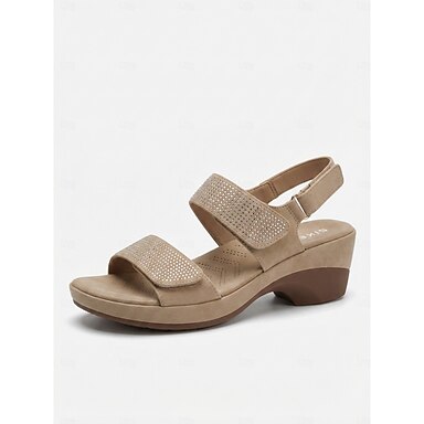 Sandálias femininas elegantes de plataforma cáqui - confortáveis e com strass brilhantes, perfeitas para usar à beira da piscina de hotéis de luxo ou em resorts de verão. &jantares à beira-mar