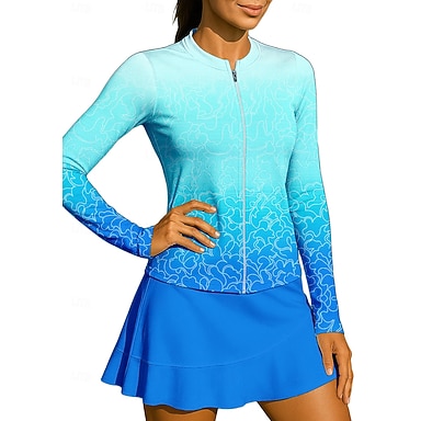 Mulheres Gradiente Camisa Esportiva Camisa de tênis Top de tênis Manga Longa Zíper Floral UPF50+ Resistente a UV Elasticidade Alta Pavio Humido Respirável Voleibal Tênis Golfe Colarinho Chinês Gola