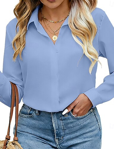 Mulheres Camisa Social camisa de botão Camisa casual Tops de chiffon Côr Sólida Tecido Elegante Férias Moda Manga Longa Aberto para a Lateral Tops regulares Diário Feriado Para Noite Azul Preto