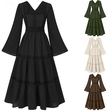 Elegante Medieval Renascentista Vestido Coquetel Viking Elfo Côr Sólida Fantasia Mulheres Celta Pirata Fantasia Dia Das Bruxas Carnaval Baile de Máscaras Carnaval dia das Bruxas Mascarilha Adulto