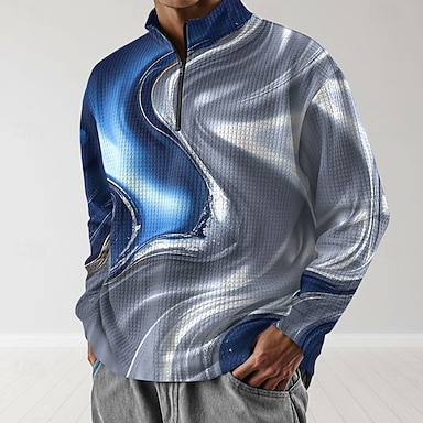 Homens Geométrica Listrado Moletom Waffle Moletom Moda Diário Clássico Casual Manga Longa Colarinho Chinês Quarter Zip Ao ar livre Casa Escritório Trabalho Prata Vermelho Azul Verde Zip Up Outono