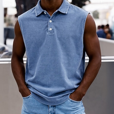 Homens Camisas Polo Camisa 100% algodão com lavagem ácida Casual Feriado Lapela Manga Curta Moda Básico Tecido Botões Vintage Primavera Verão Azul Azul Marinha Roxo Verde Cinzento Camisas Polo
