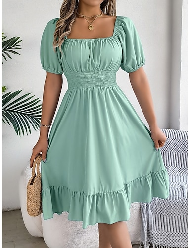 Mulheres Minivestido Vestido A Line Vestido de verão Casual Diário Normal Tecido Manga Curta Decote Quadrado Azul Preto Rosa Castanho Claro Verão