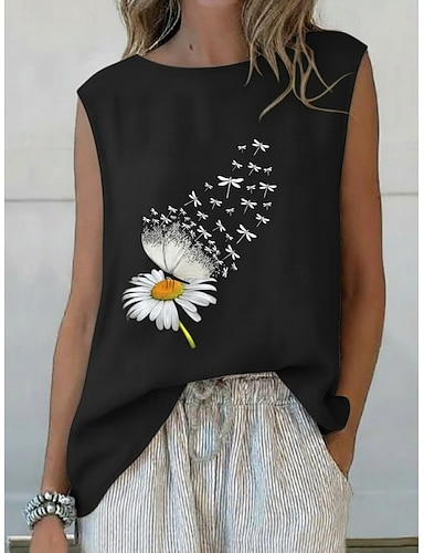 Mulheres Tops de verão Blusa camisa sem manga Imprimir Floral Diário à moda Clássico Sem Manga Gola Redonda Tops regulares Diário Feriado Para Noite Azul Preto Branco Rosa Verão Primavera