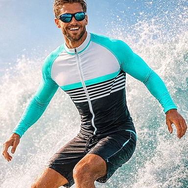 Homens Média Anti Atrito Camisa de Natação Geométrica Gradiente UPF50+ Proteção UV Secagem Rápida Manga Longa Roupa de Banho Anti Atrito Surfe Canoagem Praia Verão