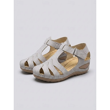 Sandálias femininas laranja de bico fechado com tira de velcro – sandálias romanas leves e acolchoadas para viagens, caminhadas ao ar livre e passeios no jardim. &uso diário