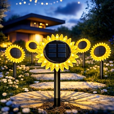 Conjunto de 1 luminária solar de jardim, modelo girassol, 2 em 1 para instalação no solo e na parede, à prova d'água IP67, ideal para decoração de jardins, quintais, pátios, caminhos, cercas e