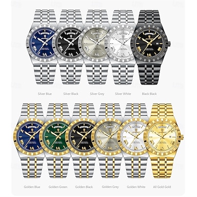 Relógio Mecânico Masculino - Relógio de Quartzo Retro Vintage Pulso Luminosa Luz de Fundo LED Cronógrafo À Prova D'água Relógio em Aço Inoxidável Presentes para o Dia dos Pais