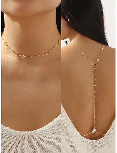 Colar feminino com pingente em forma de lágrima em liga metálica, dourado e prateado, ideal para férias na praia, festas, vestidos com decote nas costas e looks de resort.