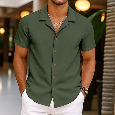 Homens Camisa de linho Camisas Polo Casual Férias Clássico Manga Curta Moda Côr Sólida Botões Puro Verão Primavera Normal Preto Branco Verde Claro Azul Marinha cáqui Cinzento Camisa de linho