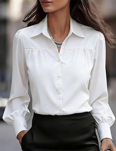Mulheres Blusa Botões Côr Sólida Elegante senhoras à moda Manga Longa Colarinho de Camisa Tops regulares Diário Trabalho Preto Rosa Vinho Verde Damasco Primavera Outono Inverno