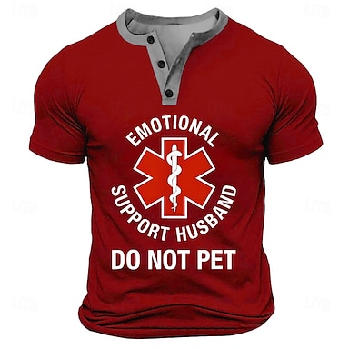 Camiseta Henley Engraçada Masculina de Manga Curta - 'Marido de Apoio Emocional Não Acariciar' Camiseta Gráfica Presente Engraçado para Maridos
