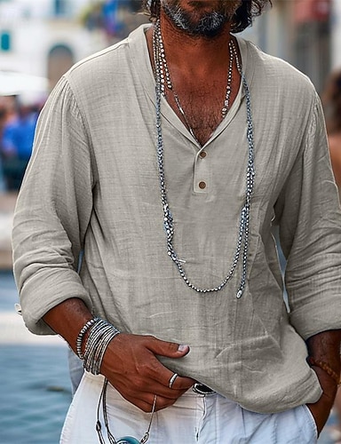 Homens Camisa Social camisa de verão Roupa de Praia camisa de botão Preto Branco Rosa Azul cáqui Manga Curta Tecido Lapela Férias Casual Roupa Algodão E Linho Moda Confortável