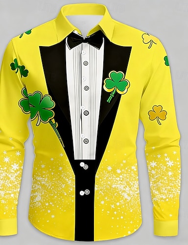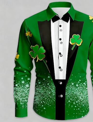 Camisa Masculina de Colarinho Falso e Design de Terno de Trevo do Dia de São Patrício Camisa com Botão Manga Longa Moda Casual para Festa Feriado Primavera Outono Colarinho Turn Down Camisas com