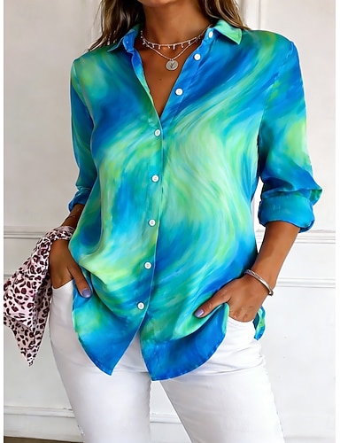 Mulheres Camisa Social camisa de botão Camisa casual camisa de praia Imprimir Gráfico à moda Clássico Casual Manga Longa Colarinho de Camisa Tops regulares Diário Feriado Para Noite Azul Preto Rosa