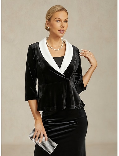Mulheres Tops elegantes Tops de noite Frufru Côr Sólida Elegante Vintage à moda Manga 3/4 Decote V Ombro a Ombro Tops regulares Preto e Branco Inverno