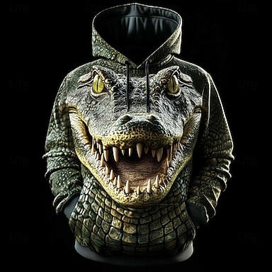 Homens Crocodilo Moletom Legal Festa Manga Longa Gola Redonda Streetwear Bandagem Verde 2# Verde 3# Verde 4# Verde Com Cordão Outono Inverno Designer S M L XL XXL XXXL