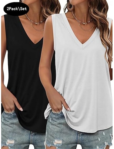 Pacotes múltiplos 2pcs Feminino Decote V Sem Manga Vermelho+Rosa Tanque Camiseta Interior T-shirt Côr Sólida Diário Ao ar livre Poliéster Verão