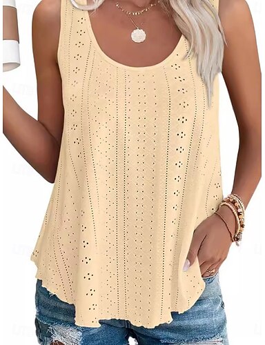 Mulheres Camisa Social Blusa Textura Topo de ilhó Camiseta Pointelle Patchwork Tecido Vintage à moda Clássico Sem Manga Decote U Tops regulares Casual Diário Praia Amarelo Rosa Vinho Verde Azul Escuro
