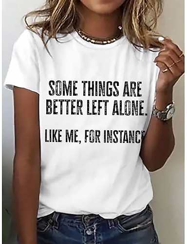 Mulheres Camiseta Imprimir Gráfico Letra à moda Casual Manga Curta Gola Redonda Tops regulares Diário Final de semana Azul Preto Branco Rosa Verão