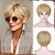 perucas de cabelo curto para mulheres peruca loira com franja peruca corte pixie com mechas loiras ondas desgrenhadas/tons misturados e castanhos com raízes (tons de loiro, branco e castanho)