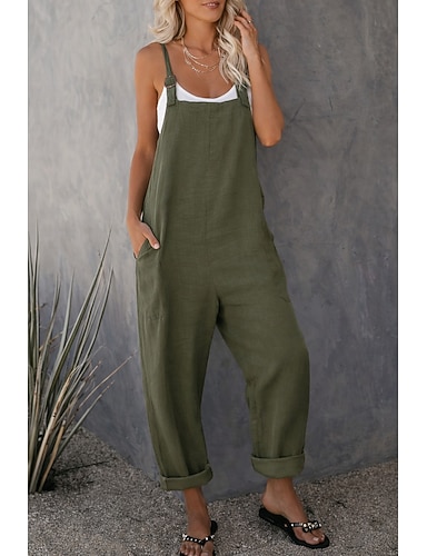 Mulheres Moda Macacão Bolsos laterais Comprimento total Calças Casual Final de semana Sem Elasticidade Tecido Conforto Cintura Média Verde Preto Vermelho S M L XL XXL