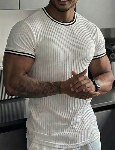 Homens Camiseta Camisa de manga curta T-shirt Manga Curta Gola Redonda Verão Primavera Côr Sólida Roupa de rua à moda Esportivo Patchwork Casual Diário Ao ar livre Branco Preto Vermelho Top Tee para