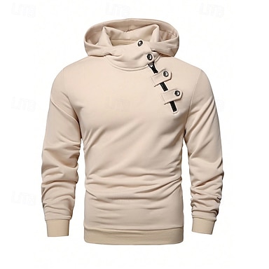 Homens Moletom Azul denim Preto Azul Marinha Cáqui Cinzento Com Capuz Tecido Bolsos Com Cordão Bolso frontal Desportos e Ar livre Diário Feriado Poliéster Roupa de rua Básico Casual Primavera & Outono